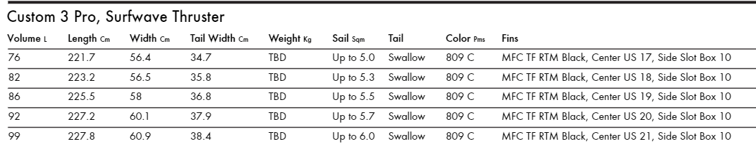 Nowy Custom 3 Pro to najlepszy Thruster w histori! Dzięki bardziej równoległym burtom, nowemu kształtowi i nowym, krótszym, zwinniejszym rockerom - Custom 3 Pro jest jeszcze szybszy i bardziej zwinny. Ta deska nie zawiedzie Cię na żadnej fali!