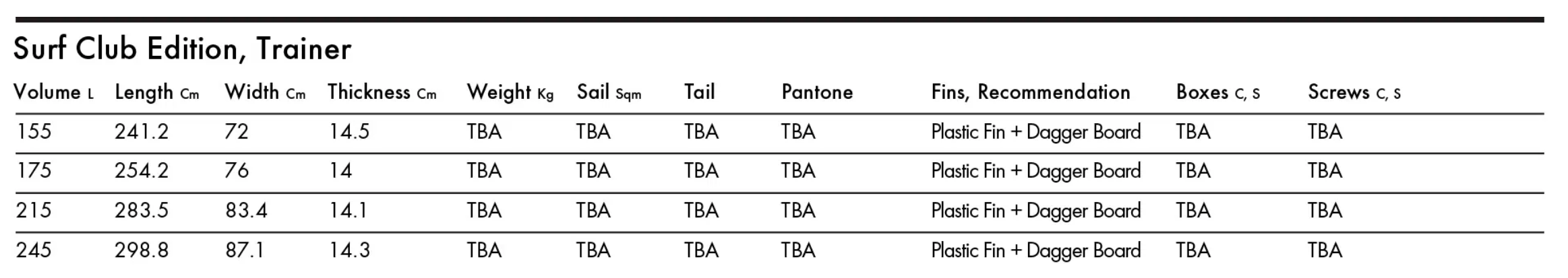 Surf Club Edition to deska stworzona z myślą o szkołach, klubach i początkujących windsurferach. Jej kształt i konstrukcja zostały zaprojektowane tak, aby nauka była łatwa, bezpieczna i maksymalnie przyjemna – od pierwszego wejścia na deskę aż po pierwsze ślizgi.