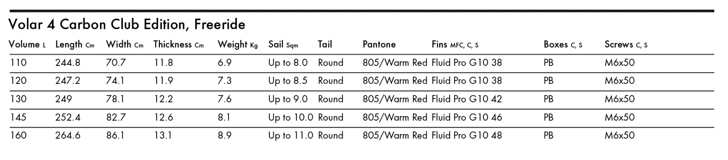 Nowa deska Volar 4 Carbon Club Edition sprawia, że każdy hals staje się przyjemnością. Lekka, szybka i stabilna – pozwala płynąć w ślizgu nawet przy słabszym wietrze, a dzięki dopracowanemu kształtowi i rockerowi utrzymuje idealny trim oraz kontrolę od pierwszego momentu w footstrapach. Nowa generacja oferuje szerszy zakres wiatrowy, lepszą reakcję i jeszcze łatwiejsze jiby – wejście i wyjście z manewru są płynniejsze i szybsze niż kiedykolwiek.