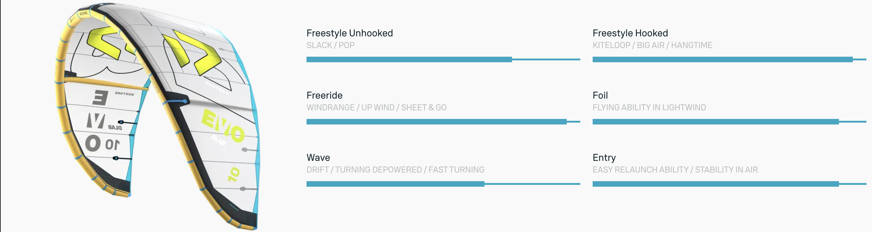 Wykonany z ultralekkich, nowatorskich materiałów Aluula Gold i Trinity TX, Evo D/LAB oferuje niespotykaną moc dolnego zakresu, perfekcyjną kontrolę przy silnym wietrze oraz stabilność, która daje Ci pełne zaufanie niezależnie od warunków. Ten latawiec pozwala Ci wznieść się wyżej, szybciej i dłużej niż kiedykolwiek wcześniej — zarówno na freeridzie, freestyle’u, jak i w wave’ie.