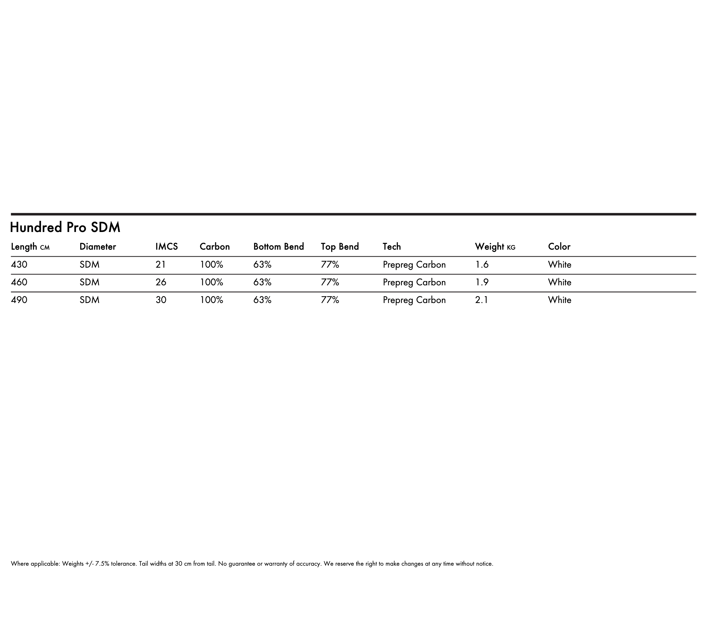Hundred Pro to bezkompromisowy maszt stworzony do prawdziwych wyścigów. Model był opracowywany przez czołowych zawodników! Najlepiej działa na slalomowych oraz freeride'owych żaglach. Prawdziwą perełkę tworzy w połączeniu z żaglem Goya Mark 2. Głównym założeniem masztu SDM, jest uzyskanie większej sztywności, bez pogrubiania ścian masztu, dzięki czemu uzyskuje się naprawdę wytrzymały maszt, przy niskiej wadze!