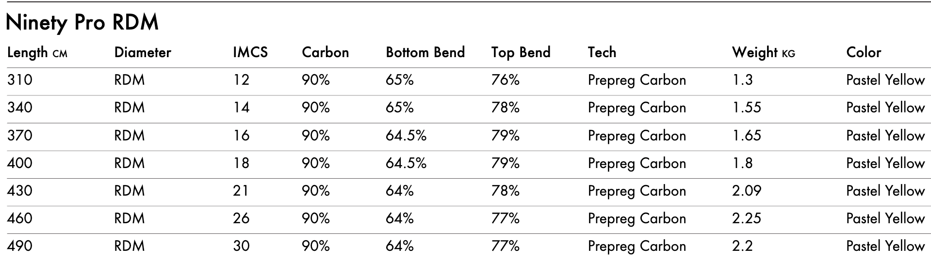 Przy 90% węgla ten maszt zapewnia najlepszy stosunek masy do wytrzymałości. Jest wystarczająco lekki dla każdego rider'a oraz doskonale radzi sobie w każdych warunkach. W skrócie Ninety Pro oferuje wyjątkową trwałość oraz doskonałe czucie żagla.
