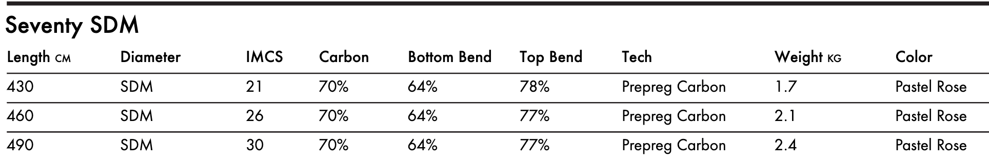 Seventy Pro to świetnia linia masztów, które występują w wersji SDM oraz RDM. Głównym założeniem masztu SDM, jest uzyskanie większej sztywności, bez pogrubiania ścian masztu, dzięki czemu uzyskuje się naprawdę wytrzymały maszt, przy niskiej wadze!