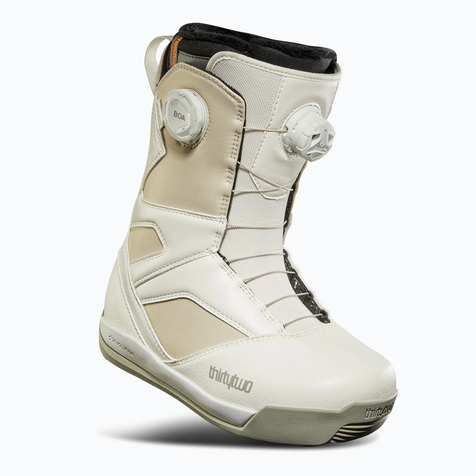 W modelu ThirtyTwo Stw Double Boa W'S zastosowano podwójny system BOA® Fit System, który umożliwia niezależną regulację górnej i dolnej części buta, co przekłada się na precyzyjne dopasowanie. Szybka i intuicyjna obsługa systemu BOA® pozwala na błyskawiczne dopasowanie napięcia nawet w rękawicach. Rozwiązanie to zwiększa kontrolę podczas jazdy oraz eliminuje punkty ucisku.